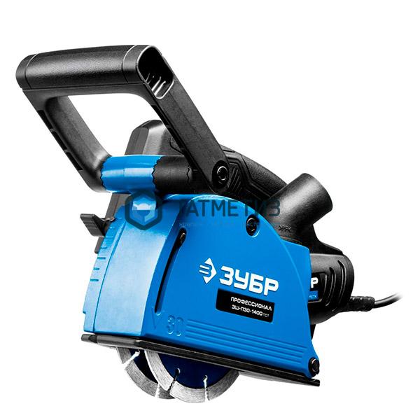 Штроборез ЗУБР, глуб. паза до 30мм, 125мм, подкл. пылесоса, плавн пуск, защита от перегрузки,1400Вт
