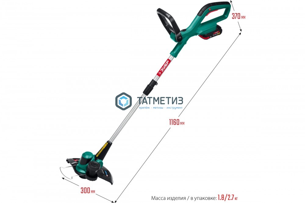 Аккумуляторный триммер ЗУБР 18В, 1 АКБ 2 А*ч ТА-185-21 используется для ухода за газоном, скашивания травы и сорняков.