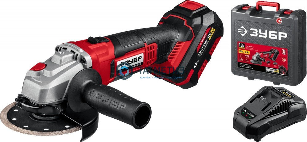 УШМ аккумуляторная 18В, 125мм, 1 АКБ (4 А·ч), кейс, ЗУБР С1-18