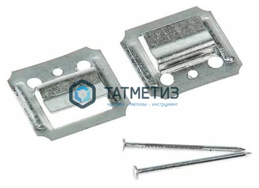 Металлическая деталь имеет отверстия для гвоздей или скоб, а также язычок, удерживающий облицовочный материал за паз.