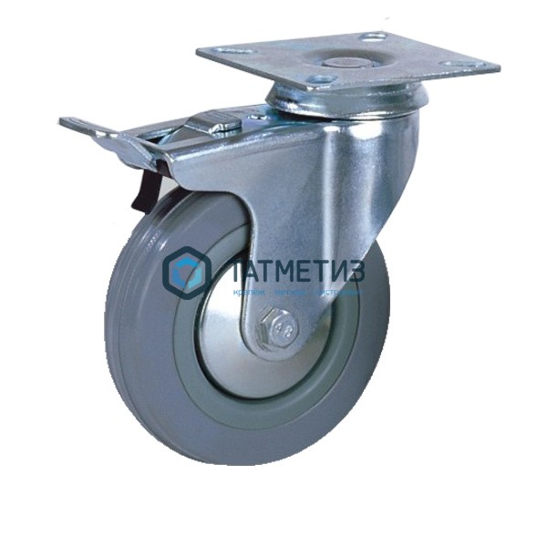 Колесо поворотное с площадкой и тормозом серая резина d 75 мм