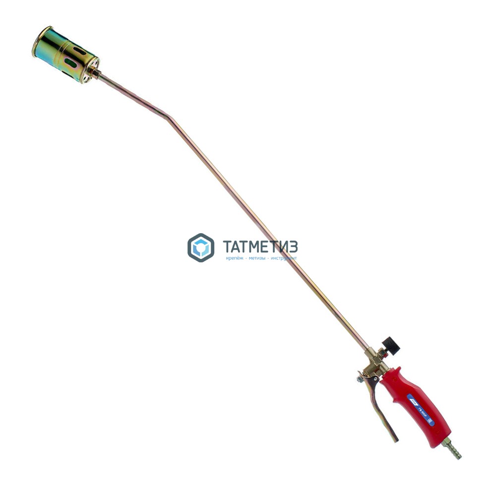 Горелка с рычагом подачи горючего газа. Длина горелки 900 мм. Горелка пропановая ГВ-901Р предназначена для нагрева изделий и заготовок из черных и цветных металлов, оплавления битумных рулонных материалов, сушки литейных форм, обжига старой краски. В качестве горючего газа применяется пропан-бутановая смесь. На стволе горелки расположен рычаг подачи горючего газа.